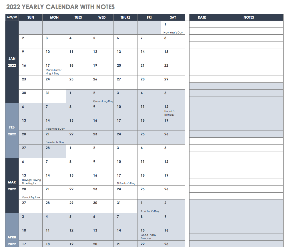使用这个12个月的日历来查看你的日程安排和即将到来的任务。该模板显示标准的1月至12月日历,因此您可以一目了然地查看长期项目和任务。