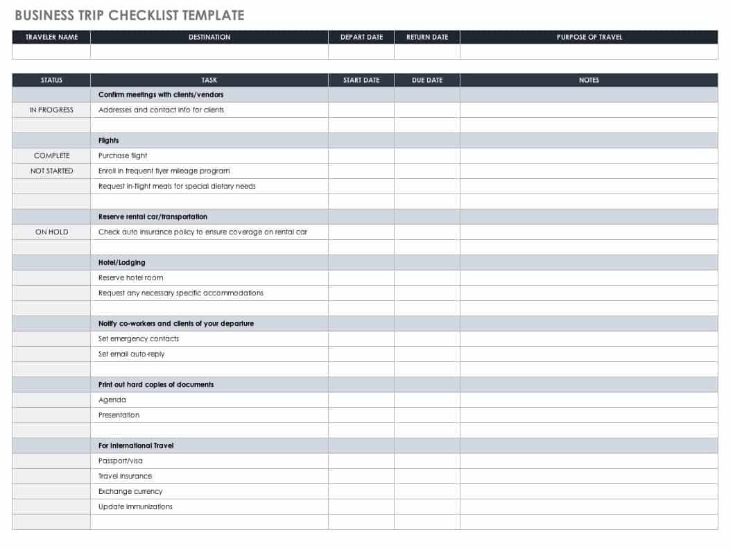 商务旅行清单模板