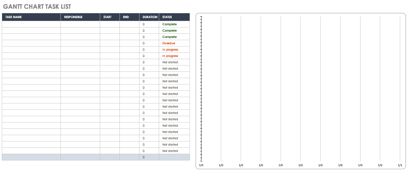 使用这个甘特图模板,可以直观地了解您计划的任务。甘特图通常用于项目管理中,它以横条的形式显示每个任务的持续时间,跨越开始日期和结束日期。因此,很容易看到项目的不同阶段,识别依赖关系,并确定任务的优先级。甘特图对于管理跨越一定时间段的任何任务列表都很有用。