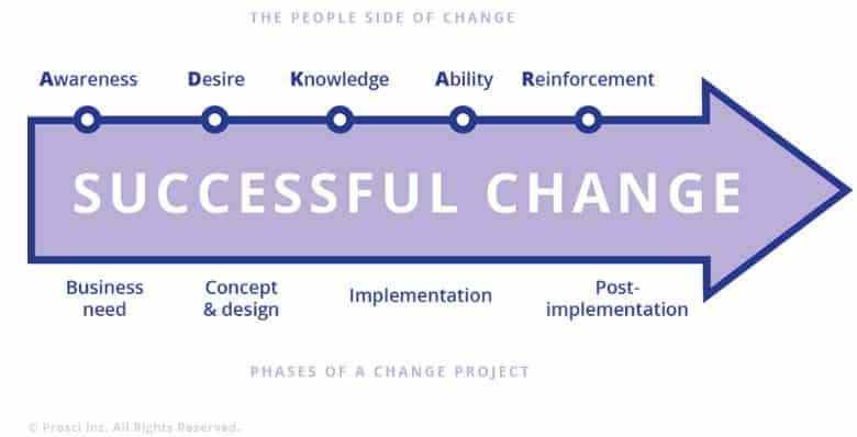 在这里对于有效的变更模型、方法和框架的概述来说,是一个很好的资源。你会发现诸如麦肯锡的变更管理框架、John Kotter的变更管理模型、Prosci ADKAR过程和戴明循环等理论。