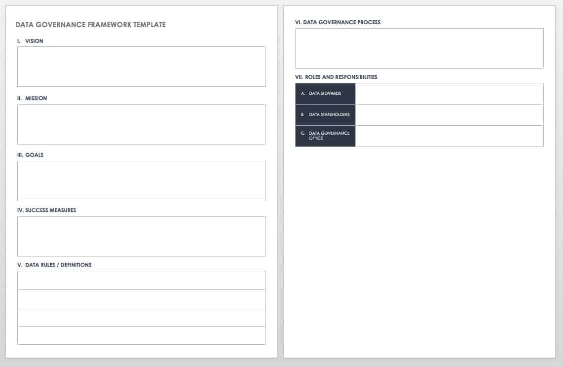 A goal of a data governance initiative is to identify the principles for the team and to establish targets and direction. This template will aid you in capturing the meaning of data governance for your organization before you begin your initiative. It will help you gain sponsorship and educate the organization about your mission, vision, and goals.