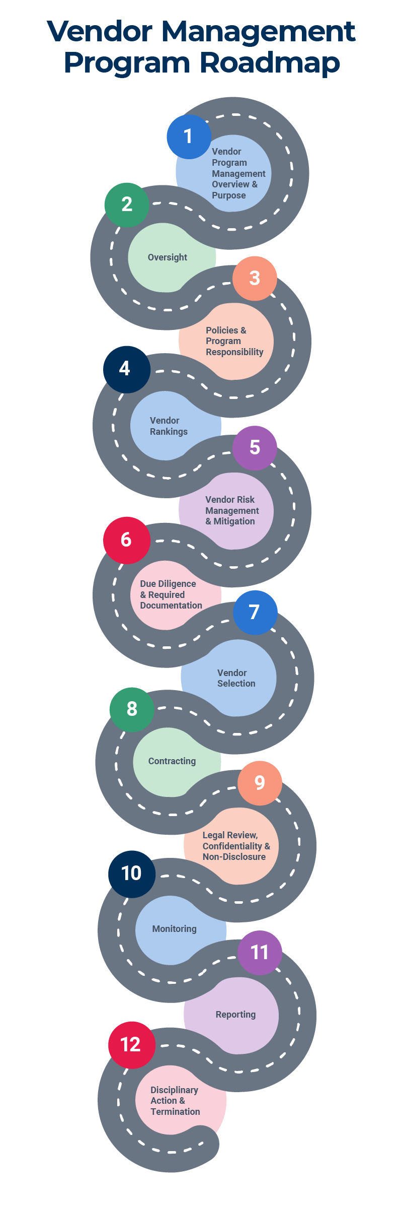 If you're new to creating a vendor management program and composing an official document to represent it, here's a roadmap to help you understand the program’s progression. The contents of such a progression include numerous details.