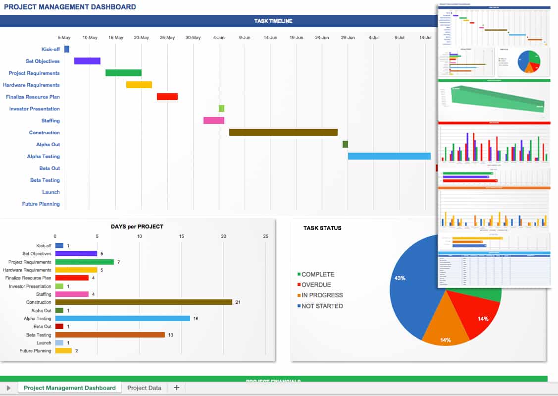 图表:在仪表板中,图表是数据的简单可视化排列,最适合用于显示给定时间点的频率或传播。他们也可以是特殊的项目跟踪者,比如甘特图.