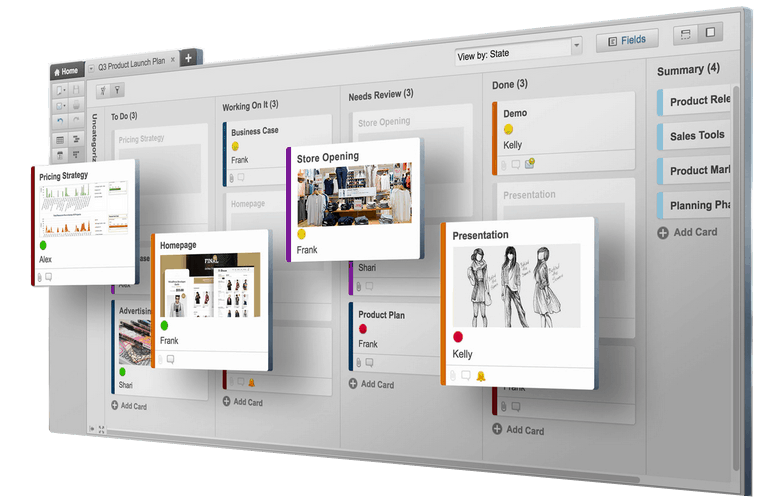 Pour la plupart des chefs de projet d’aujourd’hui, un tableau blanc est trop limité, surtout lorsque le travail est effectué à distance. Le moyen le plus récent et le plus efficace de « tenir » les cartes Kanban, en particulier pour les projets complexes ou dématérialisés, consiste à utiliser un tableau Kanban en ligne ou numérique à l’aide d’une application pour représenter des tableaux blancs virtuels.