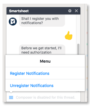 要取消注册,请单击菜单图标在聊天编写器中进行选择注销通知。