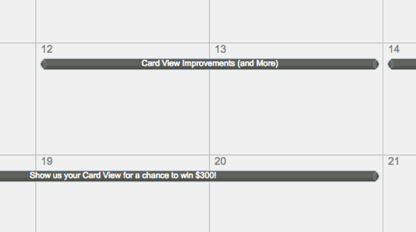使用日历视图了解您每天在项目中执行的并发任务数量,并确定在几周或几个月中重叠的任务。您可以在日历视图中查看至少一个日期列的任何表或报告。看看我们列类型文章有关日期类型列的更多信息。