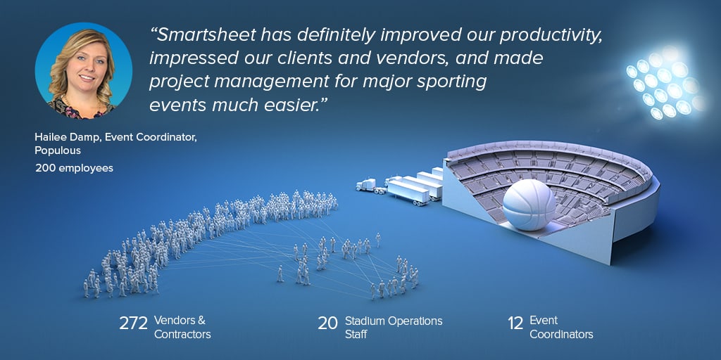 “Smartsheet has definitely improved our productivity, impressed our clients and vendors, and made event project management for major sporting events much easier," said Hailee Damp, event coordinator at Populous.