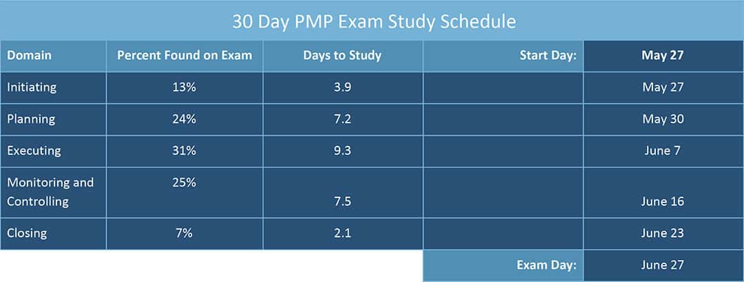 Quindi, desideri o hai bisogno di sostenere l'esame PMP in un mese? È possibile, anche se non è particolarmente consigliato. A seconda che tu sia idoneo all'esame, ti sia candidato e ti sia unito al PMI come membro, dovrai delineare un piano. In primo luogo, esamina attentamente il piano e determina gli slot temporali in cui puoi studiare. I tuoi spostamenti mattutini si prestano per sostenere un test di pratica? La tua ora di pranzo è disponibile per fare pratica di memorizzazione? Ricorda, hai solo un mese, quindi forse puoi prendere il treno per andare al lavoro e rimandare tutti quei pranzi coi colleghi fino a dopo il test. Una volta trovato il tempo, traccia i cinque domini e il tempo che trascorrerai su ciascuno. Lo Schema dell'esamedel PMI indica la percentuale di elementi del test per ogni dominio.