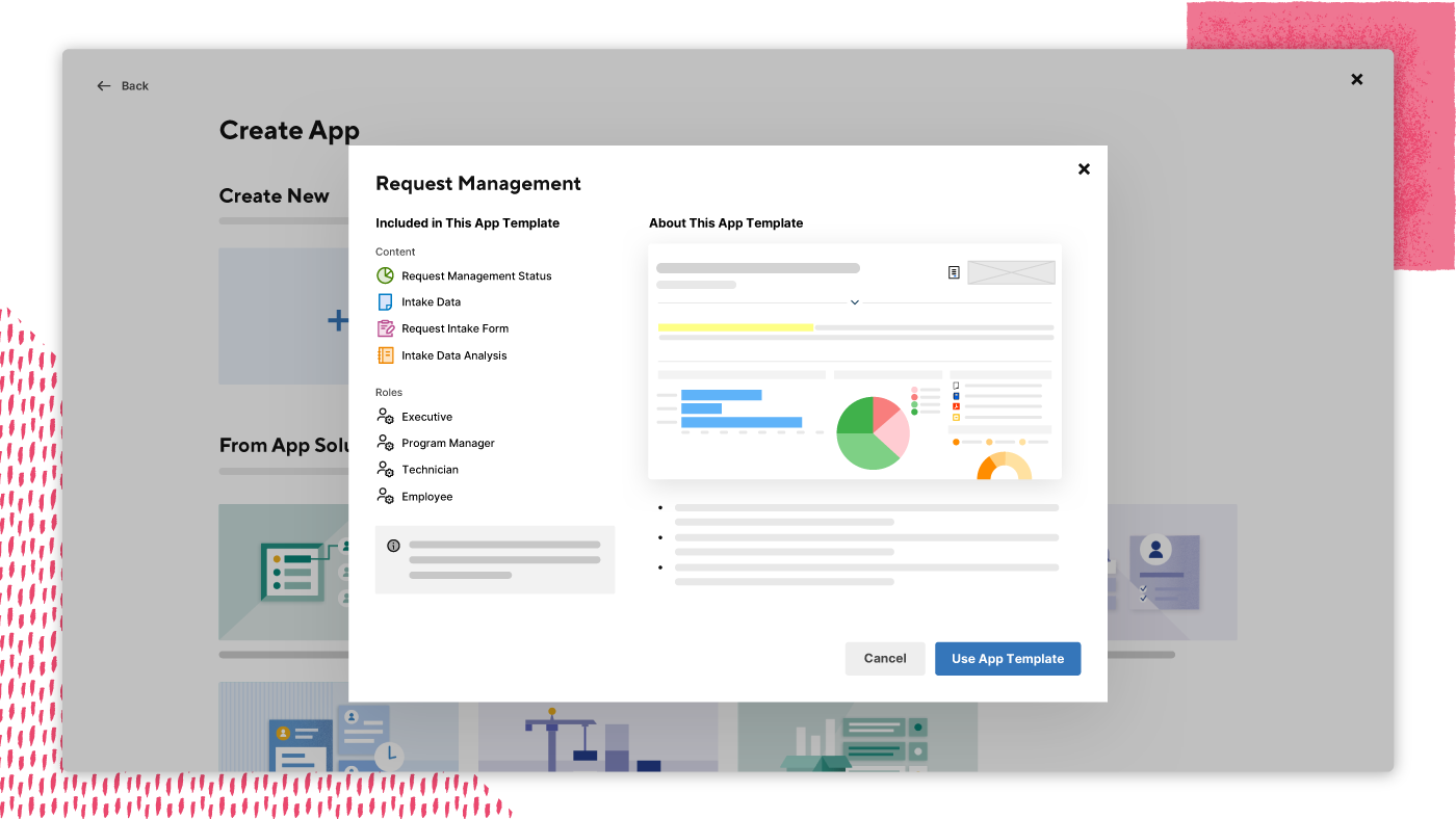 Gain the flexibility to build the apps your business needs. Start from your own Smartsheet solution or choose one of our WorkApps templates.