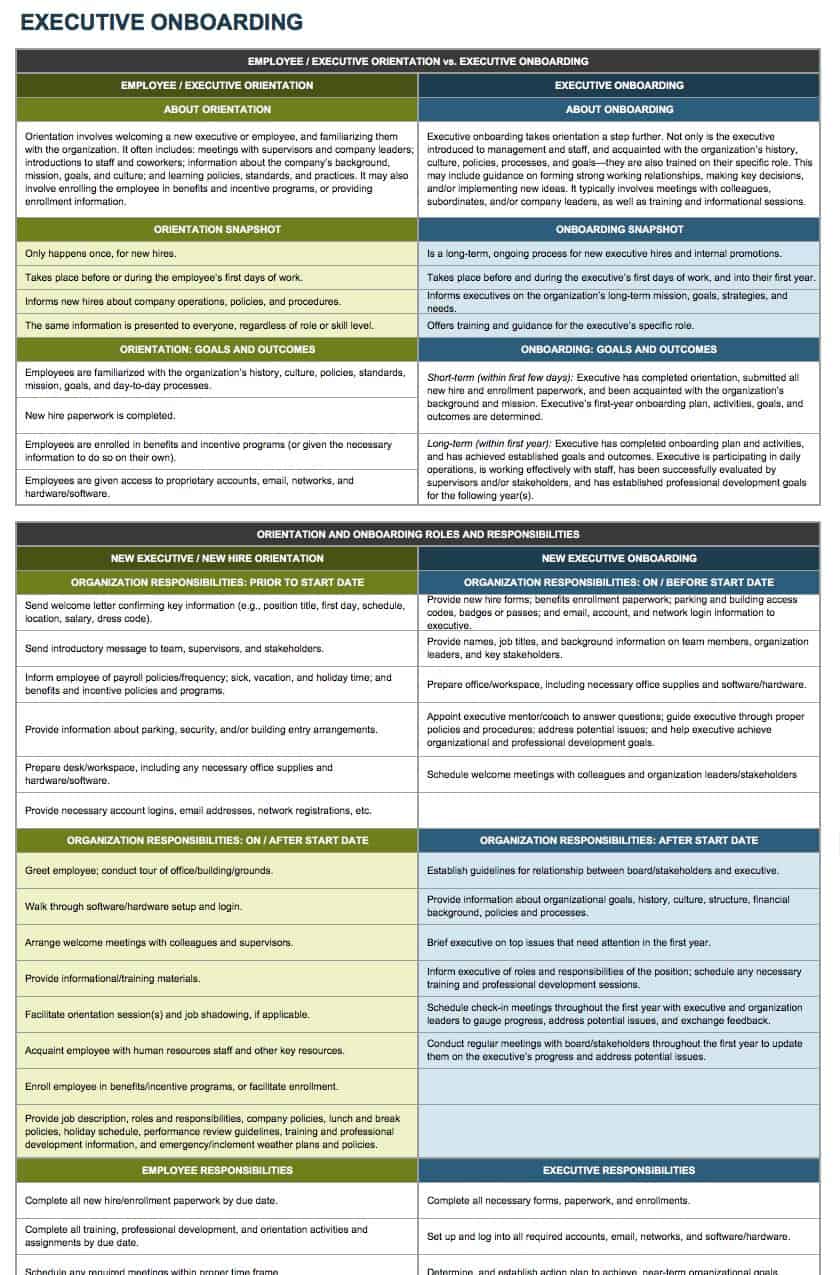 虽然对新职位上的高管来说,开始工作很重要,但他们的入职过程往往比新入职的小时工更加复杂和个性化。由于如果招聘不成功,公司将面临潜在的财务风险,所以必须遵循一个仔细的入职过程。基于技能、目标和确定的增长领域,该模板包括来自个人的输入,以帮助调整入职过程。
